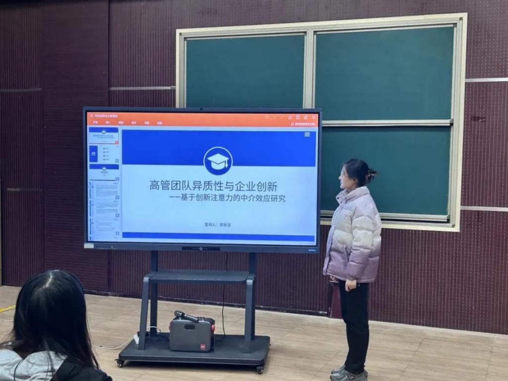 汇报人李秋洁在“高管团队异质性与企业创新—基于创新注意力的中介效应研究”中,采用实证研究法和文本分析法,分析了高管团队异质性如何通过创新注意力影响企业创新绩效。揭示了管理层权力和剩余资源在高管团队异质性与企业创新关系中的调节作用,为企业构建高效高管团队提供了理论支持。