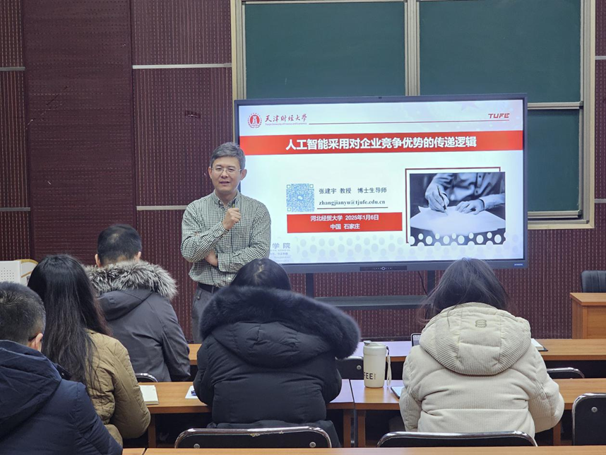 1月6日,sunbet邀请天津财经大学张建宇教授于MBA一教室作题为“人工智能(AI)采用对企业竞争优势的传递逻辑”的专题报告。报告由sunbet经理李桂荣教授主持,副经理石晓飞、封雪韵,公司青年博士教师、研究生导师生参加会议。