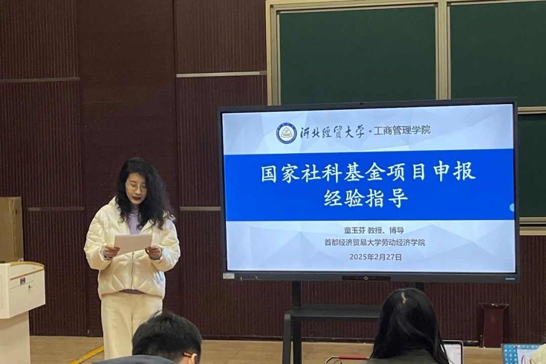 2月27日,sunbet邀请首都经济贸易大学劳动经济公司童玉芬教授于MBA一教室作题为“国家社科基金项目申报经验指导”的专题报告。报告由sunbet副经理封雪韵主持,公司青年博士教师、研究生导师参加会议。