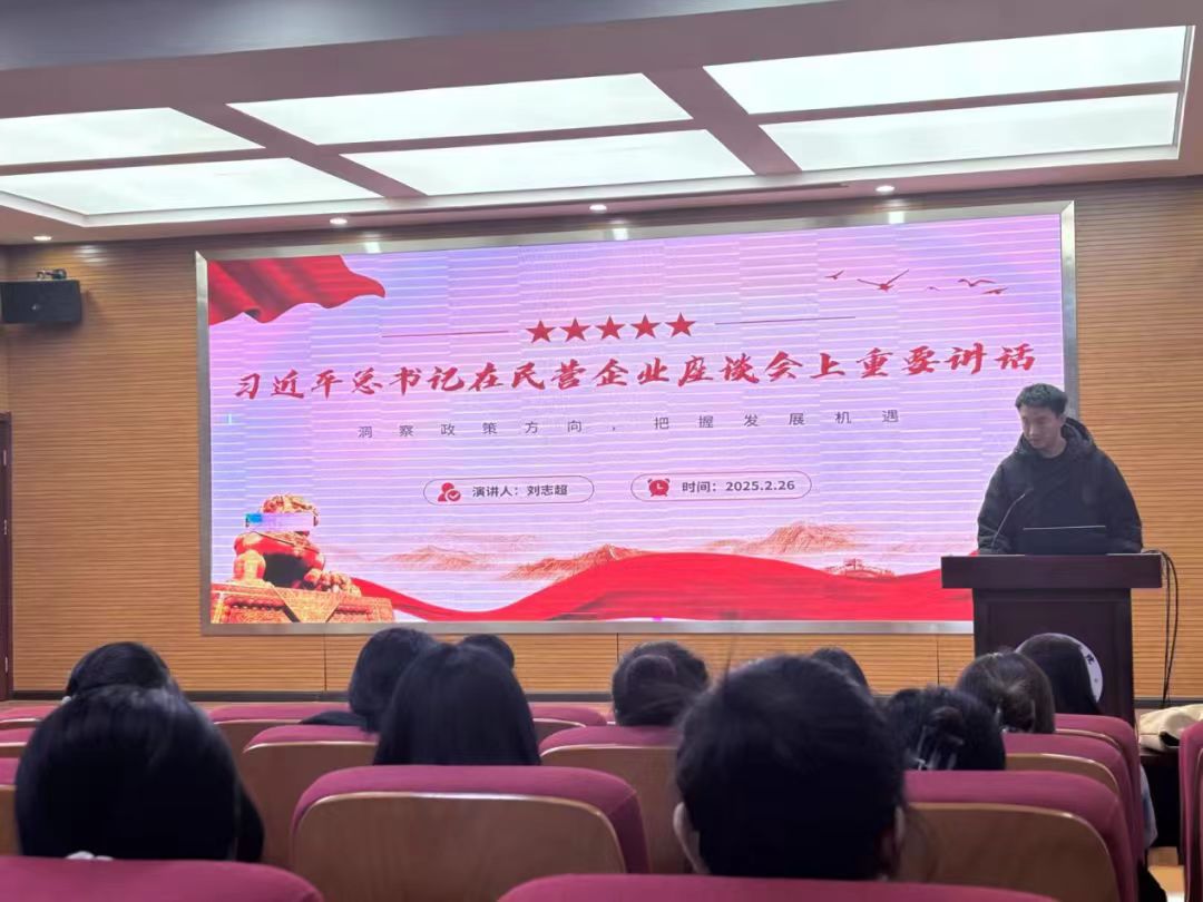 2024级工商管理专业研究生刘志超在微党课上深入解读了习近平总书记在民营企业座谈会上的重要讲话。他指出,习近平总书记的讲话高屋建瓴、内涵丰富,深刻阐述了民营经济在我国经济社会发展中的重要地位和作用,对当前民营经济发展面临的机遇和挑战进行了全面分析,为新时代民营经济发展指明了方向,提供了根本遵循。在谈到民营经济的地位和作用时,他强调,民营经济作为我国经济制度的内在要素,是推进中国式现代化的生力军,在稳定增长、促进创新、增加就业、改善民生等方面发挥着不可替代的作用。最后,刘志超呼吁同学们要深刻领会习近平总书记重要讲话精神,立足本职,努力学习专业知识,提升专业技能,为推动民营经济高质量发展贡献自己的力量。